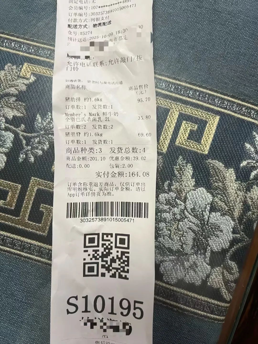 上海市民王先生向记者反映维嘉优配平台,自己是山姆的老会员,每个月都会从山姆买肉,平时喜欢通过极速达在线上购买山姆的产品,偶尔也会去线下门店购物。