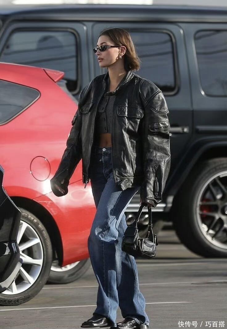 海莉作为“行走的皮衣带货机器”,几乎把市面上所有皮衣款式都尝试了遍,不夸张的说,只要你跟着她选款搭配皮衣,就没有踩雷的时候。
